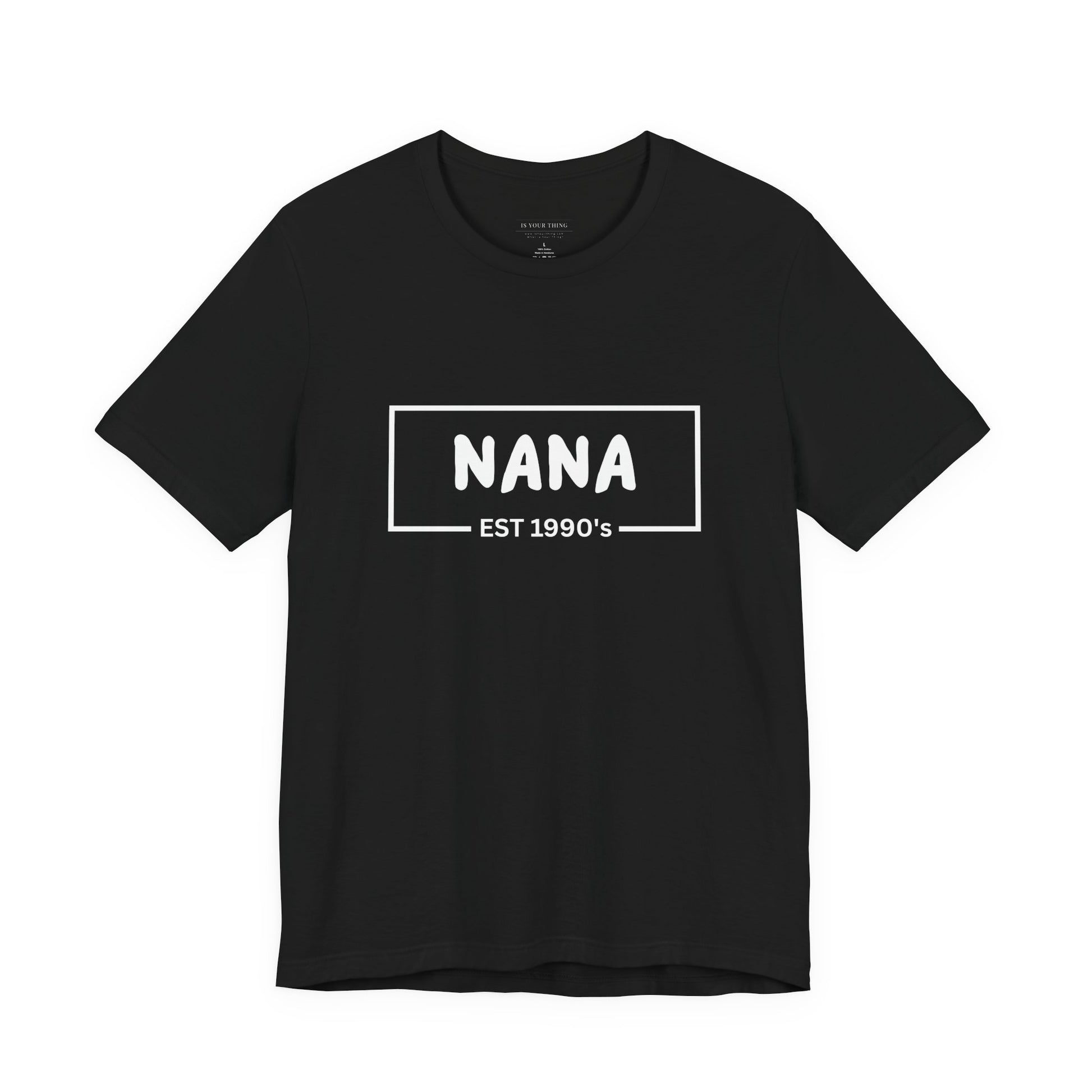 Soft, breathable tee with a clean, modern graphic that reads “NANA” with an established-year line beneath. Lightweight Airlume cotton keeps the shirt comfortable for all-day wear, while ribbed collar and shoulder tape preserve shape through frequent washes. The understated boxed design reads like a quiet declaration — worn at family gatherings, backyard barbecues, or casual days when Grandma wants to show a little pride without shouting. It layers easily under a cardigan or pairs with jeans for a relaxed, lived-in look that matches how real grandmothers move through life: warm, steady, and quietly stylish.