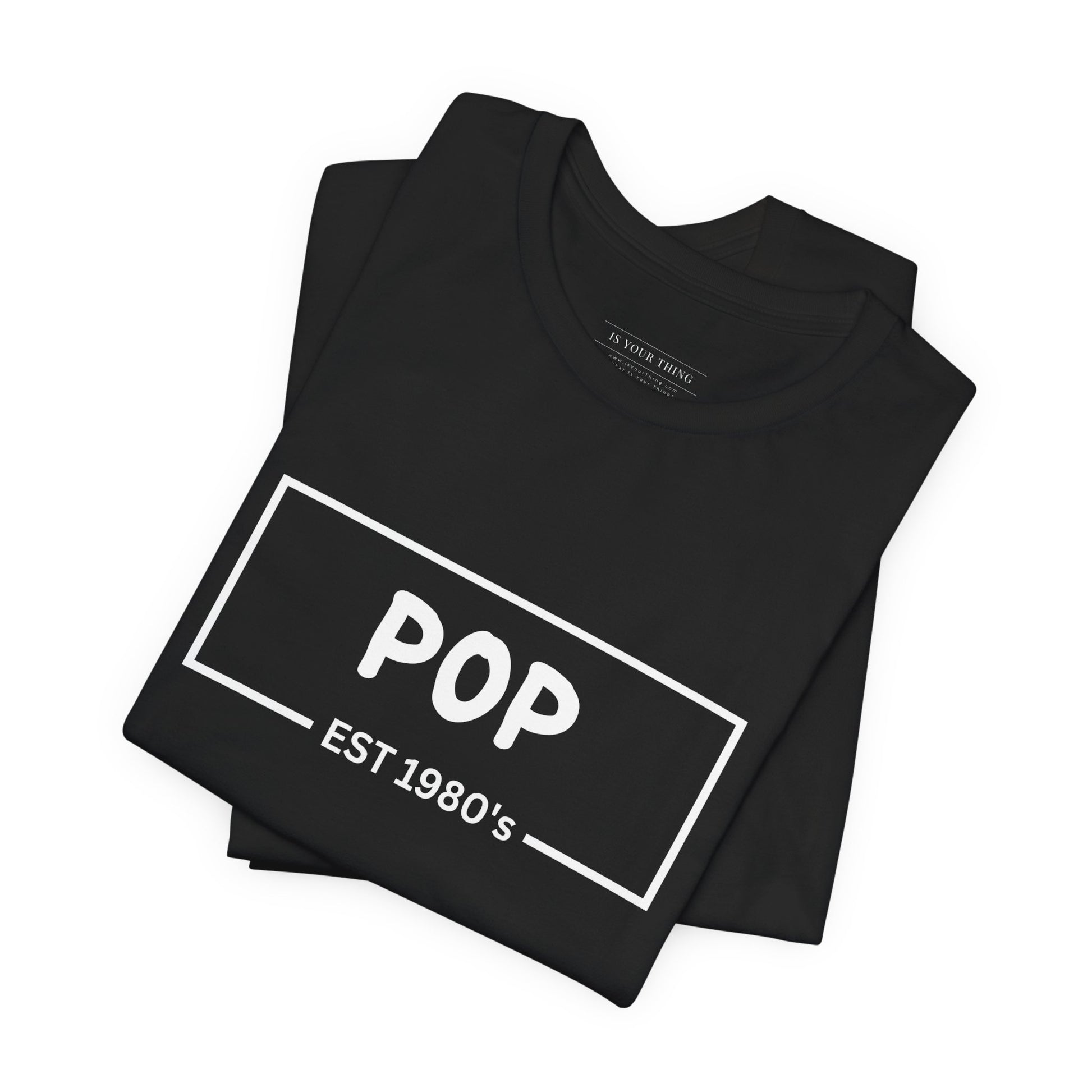 Soft, breathable, and designed for everyday wear — this crewneck tee carries a clean, nostalgic graphic that reads “POP • EST 1980’s” inside a simple framed logo. The lightweight 100% Airlume combed and ring-spun cotton feels smooth against skin and layers easily under jackets or over long sleeves. The cut is a retail, slightly tailored fit with a neat ribbed collar and shoulder tape for structure, so the shirt keeps a crisp silhouette through repeat wear. The minimal, monochrome design reads like a quiet nod to family dads, vintage-loving parents, or anyone who wants to celebrate a 1980s-born “Pop” with subtle style. It’s comfortable for daily routines, low-key gatherings, and casual outings where personal meaning matters more than flash.