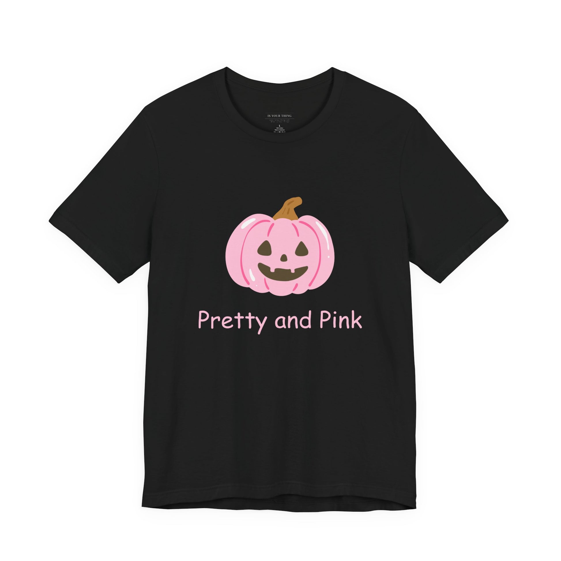 Soft cotton against your skin, a playful pink jack-o’-lantern at the chest, and a quiet wink of sweetness where spooky meets sweet. This jersey tee sits light and breathable, sliding easily into weekend plans, late‑night pumpkin‑carving sessions, or casual coffee runs. The pastel pumpkin graphic and ‘Pretty and Pink’ lettering read like a small, confident statement — not shouty, just charming. Wear it with high‑waisted jeans, an oversized cardigan, or layered under a denim jacket for a seasonally fun look that’s cozy and a little mischievous. It’s the kind of shirt that sparks compliments and starts conversations without trying too hard.