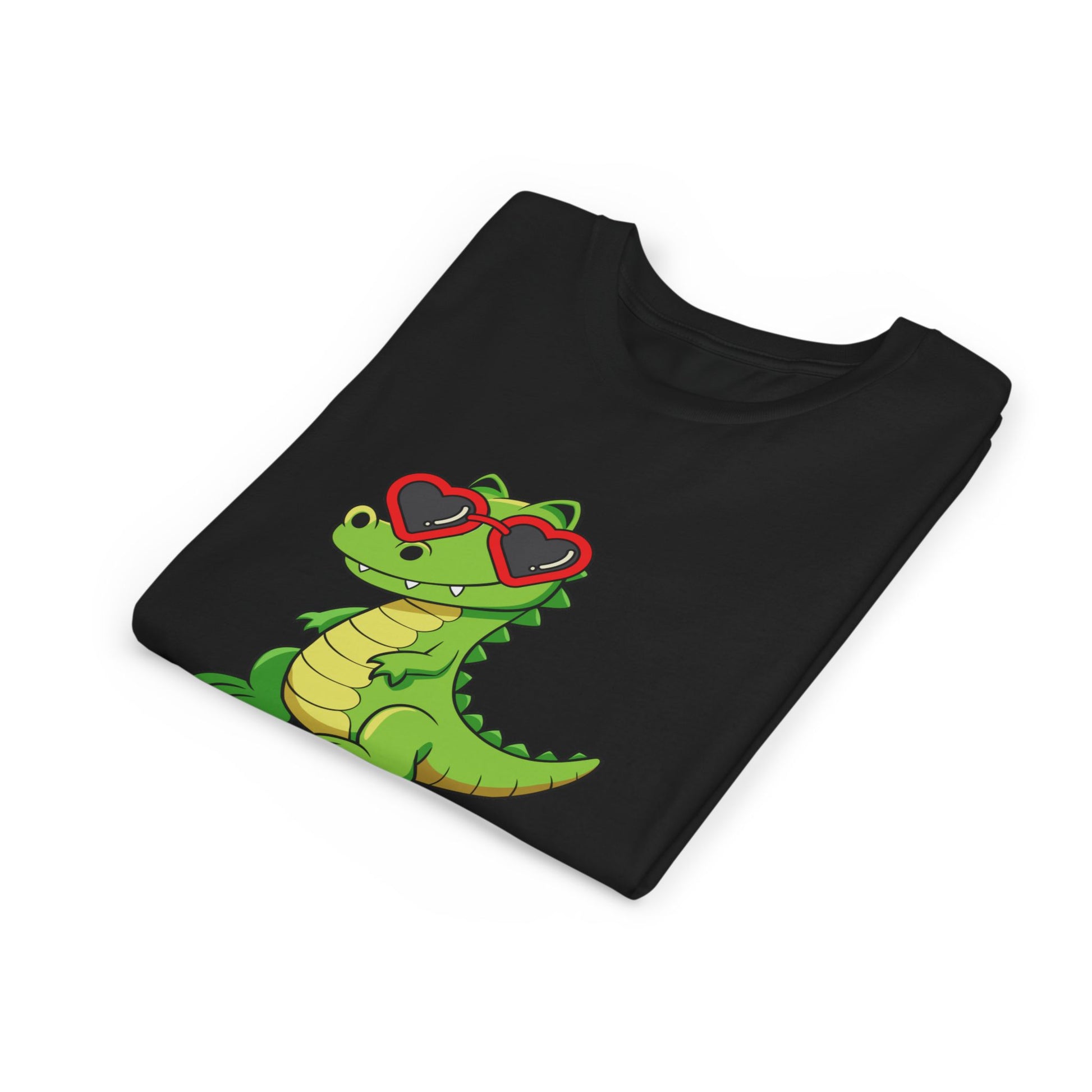 A playful kids’ tee featuring a cheerful little crocodile wearing heart-shaped sunglasses and a bold “Happy Valentine’s Day” message. Lightweight, soft, and breathable — it moves easily with active kids and keeps its shape wash after wash. The graphic sits center-front in bright, kid-friendly colors that pop on the dark fabric, making this shirt a fun way for children to join in Valentine’s celebrations or everyday play. Thoughtfully constructed details like a tear-away label, reinforced shoulder tape, and a stretchy ribbed collar keep this shirt comfy and irritation-free all day.